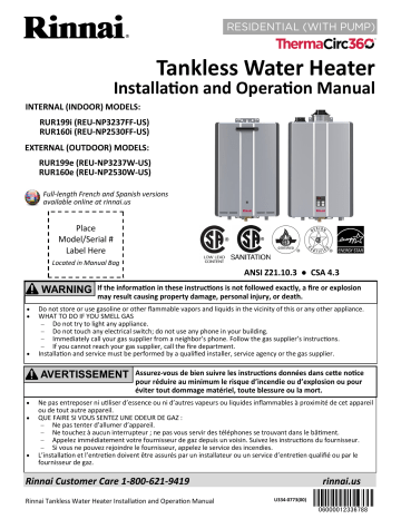 Rinnai Rur160ep Super High Efficiency Plus 8 Gpm Outdoor Liquid Propane Tankless Water Heater Installation Guide